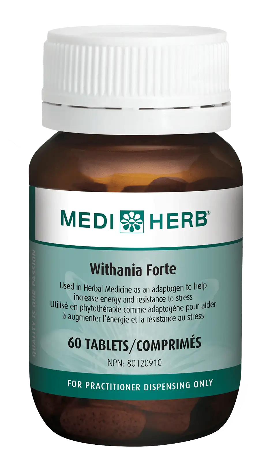 MediHerb® Withania Forte contains 10 mg of withanolides from Withania root extract per tablet.