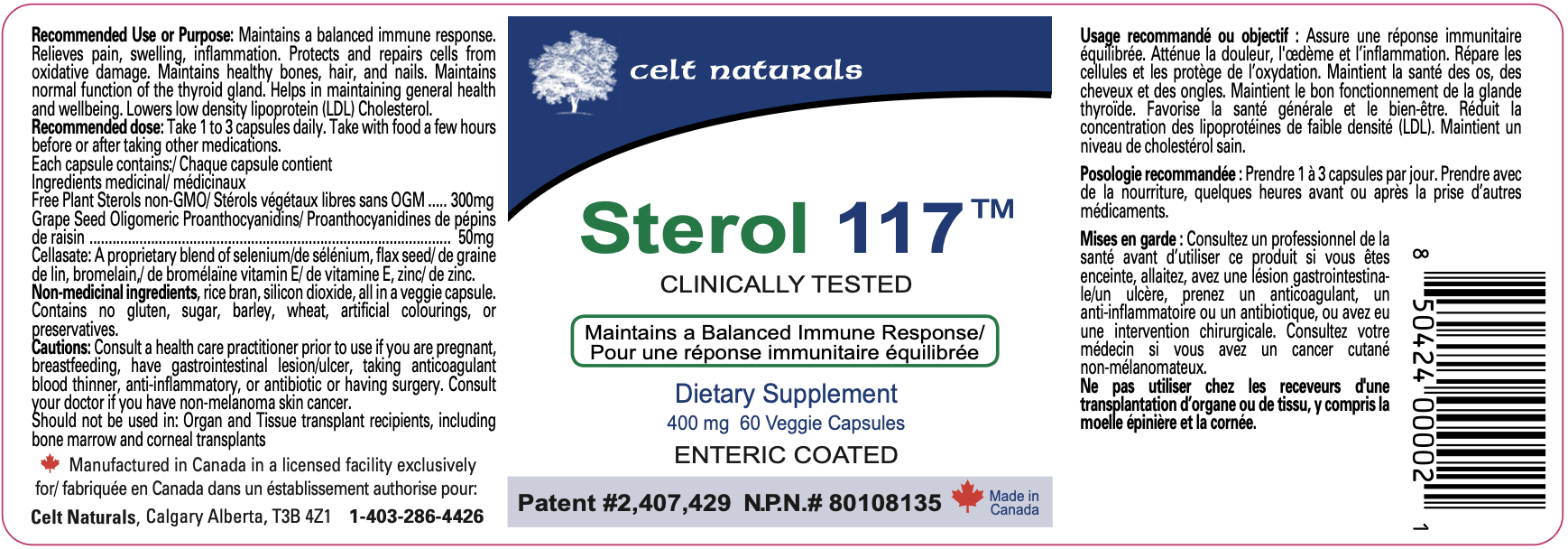 Sterol 117 is a blend of plant sterols and Grape Seed extract along with selenium, flax seed , blomelain and vitamin E designed to maintain a balanced immune response. Protects and repairs cells from oxidative damage.